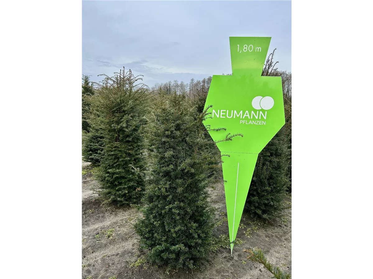 Die Heimische Eibe (Taxus baccata) ist ein Kleinbaum, welcher aufrecht wächst und gewöhnlich eine Höhe von ca. 15 m und eine Breite von ca. 10 m erreicht. Ihre nadelförmigen Blätter haben eine dunkelgrüne Färbung. Dekorative rote Zapfen zieren Taxus baccata ab September. Dieses Gehölz ist gut frostverträglich.Sie bevorzugt durchlässigen, kalkhaltigen, nährstoffreichen Boden in sonniger bis halbschattiger Lage.