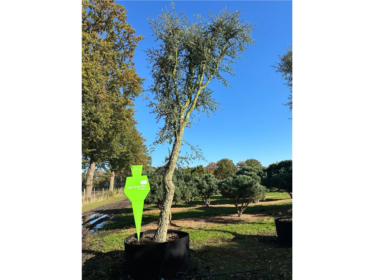 Die Kork-Eiche (Quercus suber) ist eine sehr beliebte, immergrüne Kübelpflanze, deren grünen Früchte bei guter Pflege möglich sind. Ihre dekorativen Blüten erscheinen von April bis Mai. Die dunkelgrünen und glänzenden Blätter sind eiförmig. Der Standort sollte möglichst sonnig bis halbschattig sein. Eine durchlässige und nährstoffreiche Erde ist dabei ideal. Bei günstigen Bedingungen erreicht die Kork-Eiche eine Höhe von ca. 3 m und wird bis zu 2 m breit.