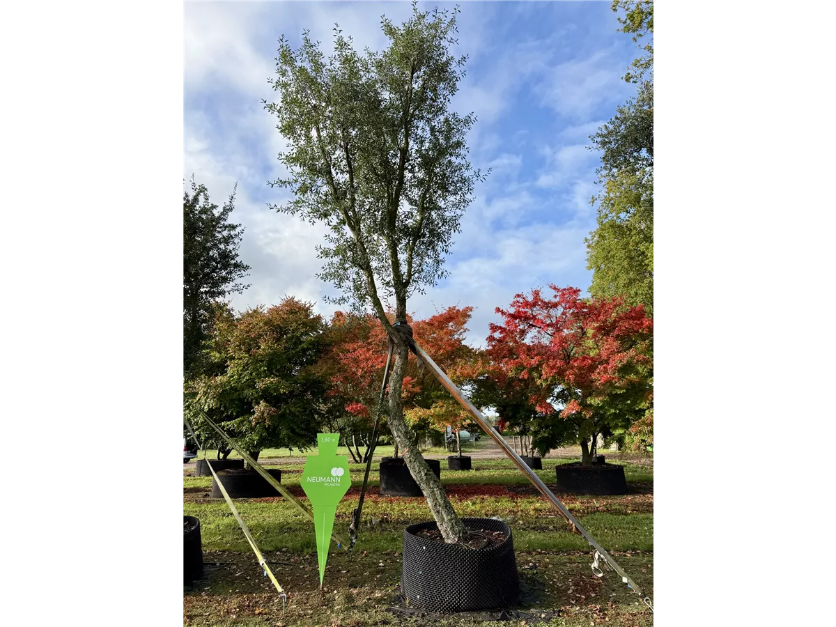 Die immergrünen Blätter der Kork-Eiche sind dunkelgrün, glänzend, eiförmig. Kork-Eiche zeigt sich leuchtend orangegelb im Herbst.